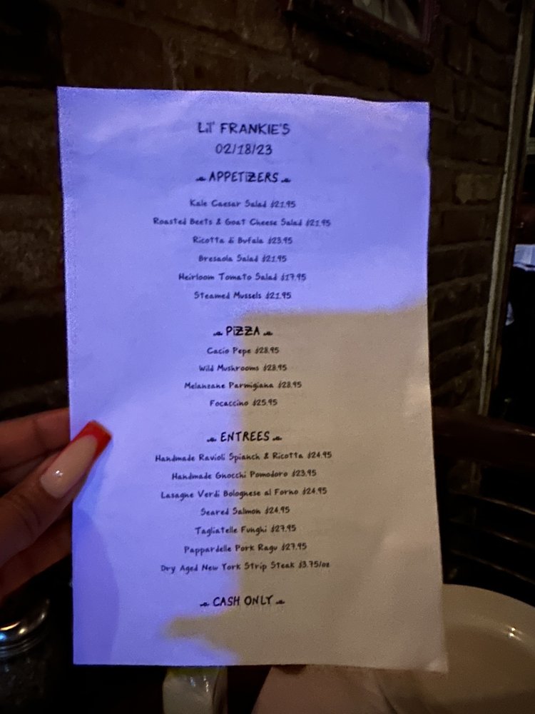 Lil Frankie’s is a cozy Italian pizza spot in New York City's East Village offering a wide range of menu options. Known for its delicious Pasta Limone and simple yet tasty Pizza Marinara, this restaurant caters to both vegan and vegetarian diners with a variety of options. The vibrant atmosphere and friendly service make it a great choice for casual dining or special occasions. Customers rave about the flavorful dishes like the fried calamari and chicken parmigiana, highlighting the quality and taste of the food. The extensive wine selection adds to the dining experience, complementing the homemade pasta and authentic Italian flavors. Whether you're craving a classic dish like spaghetti limone or looking to try something new, Lil Frankie’s promises a satisfying meal every time.